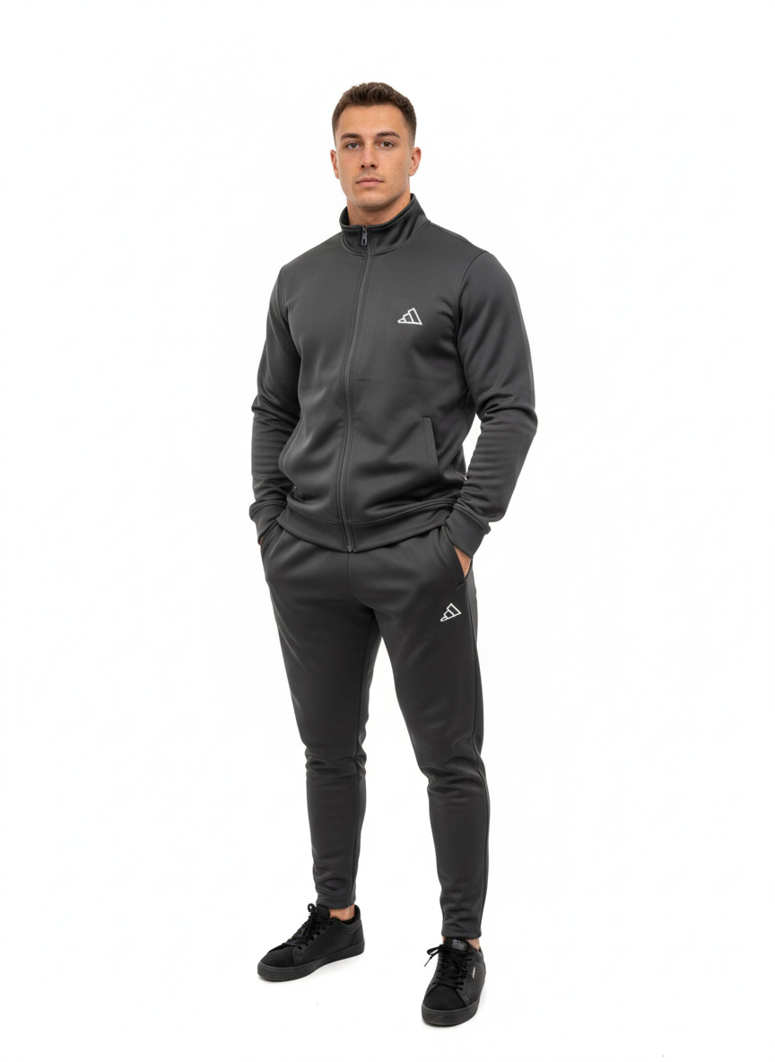 This two-piece set is a classic full-zip track suit designed for a sleek, athletic fit.