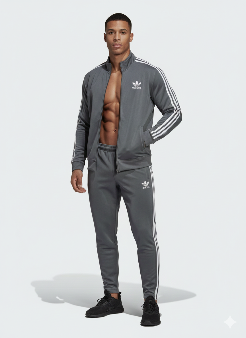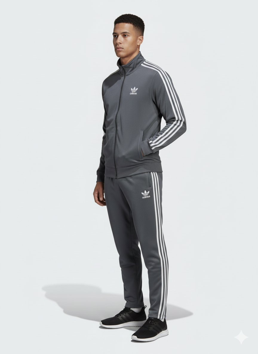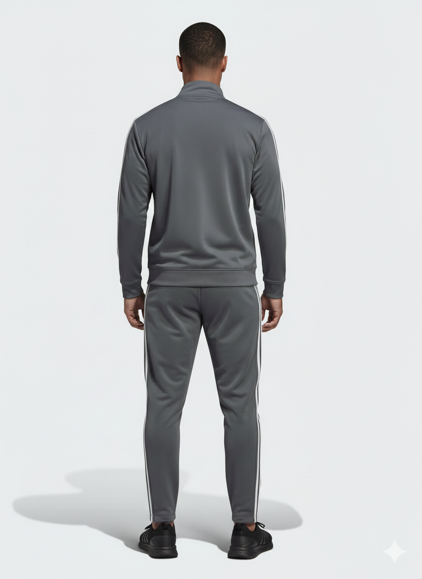 The ultimate piece of athletic-inspired streetwear. This tracksuit is made from a durable, comfortable tricot fabric (often recycled polyester) that moves with you, making it perfect for warm-ups, cool-downs, or simply owning your casual everyday style. The deep Charcoal Grey color offers a versatile, polished look that pairs well with sneakers and casual tees.