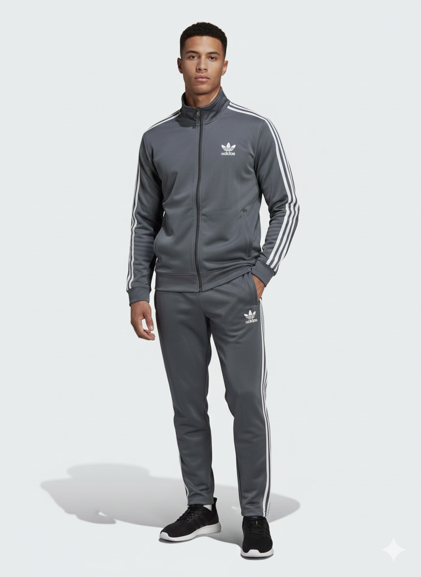 Iconic Branding: The jacket and trousers proudly display the legendary adidas Trefoil logo on the chest and thigh, symbolizing authenticity and sportswear history.
