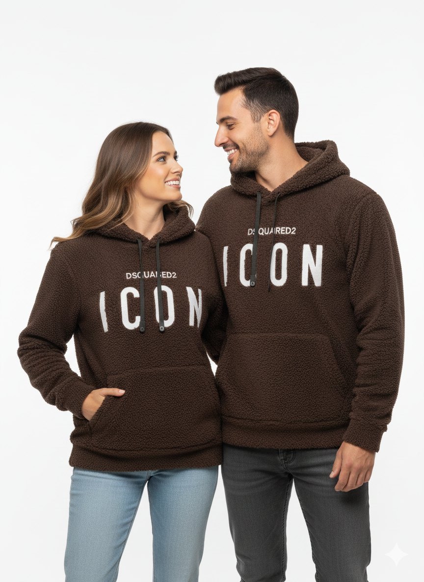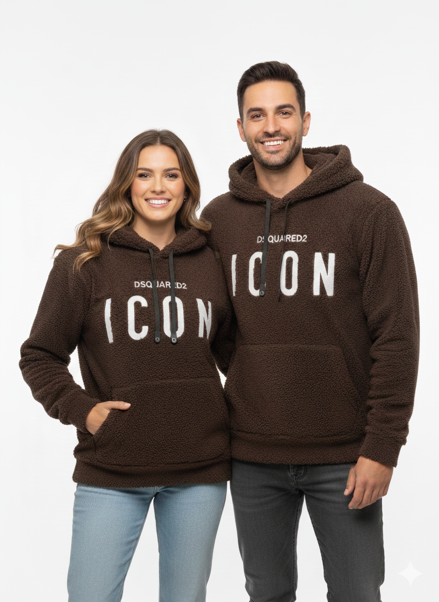 Stay cozy and make a statement with the ICON Teddy Fleece Unisex Hoodie. Crafted from ultra-soft, textural teddy fleece, this Brown pullover features the bold “ICON” graphic in crisp white on the chest. Perfect for couples, friends, or anyone looking for premium comfort and contemporary streetwear style.