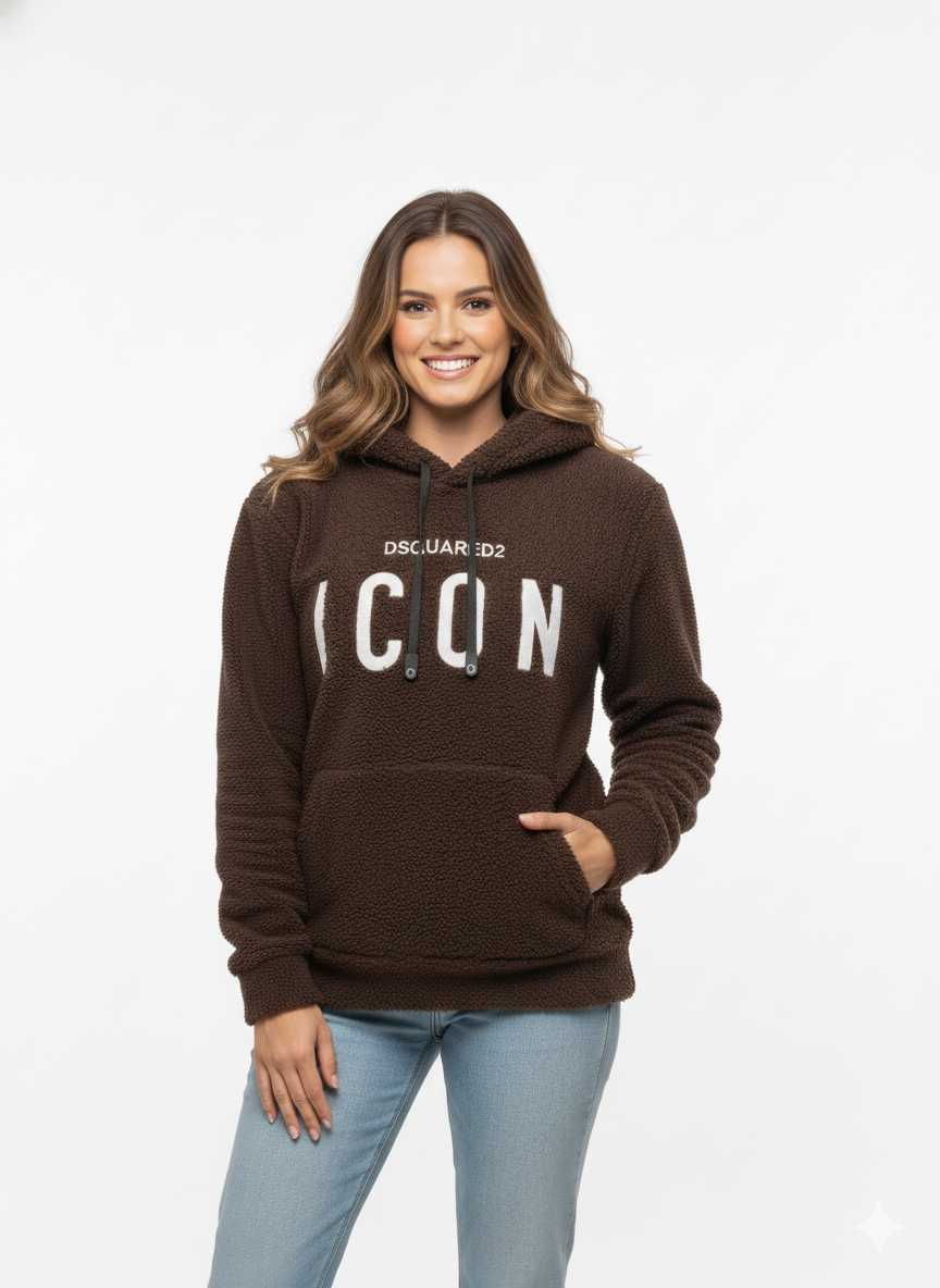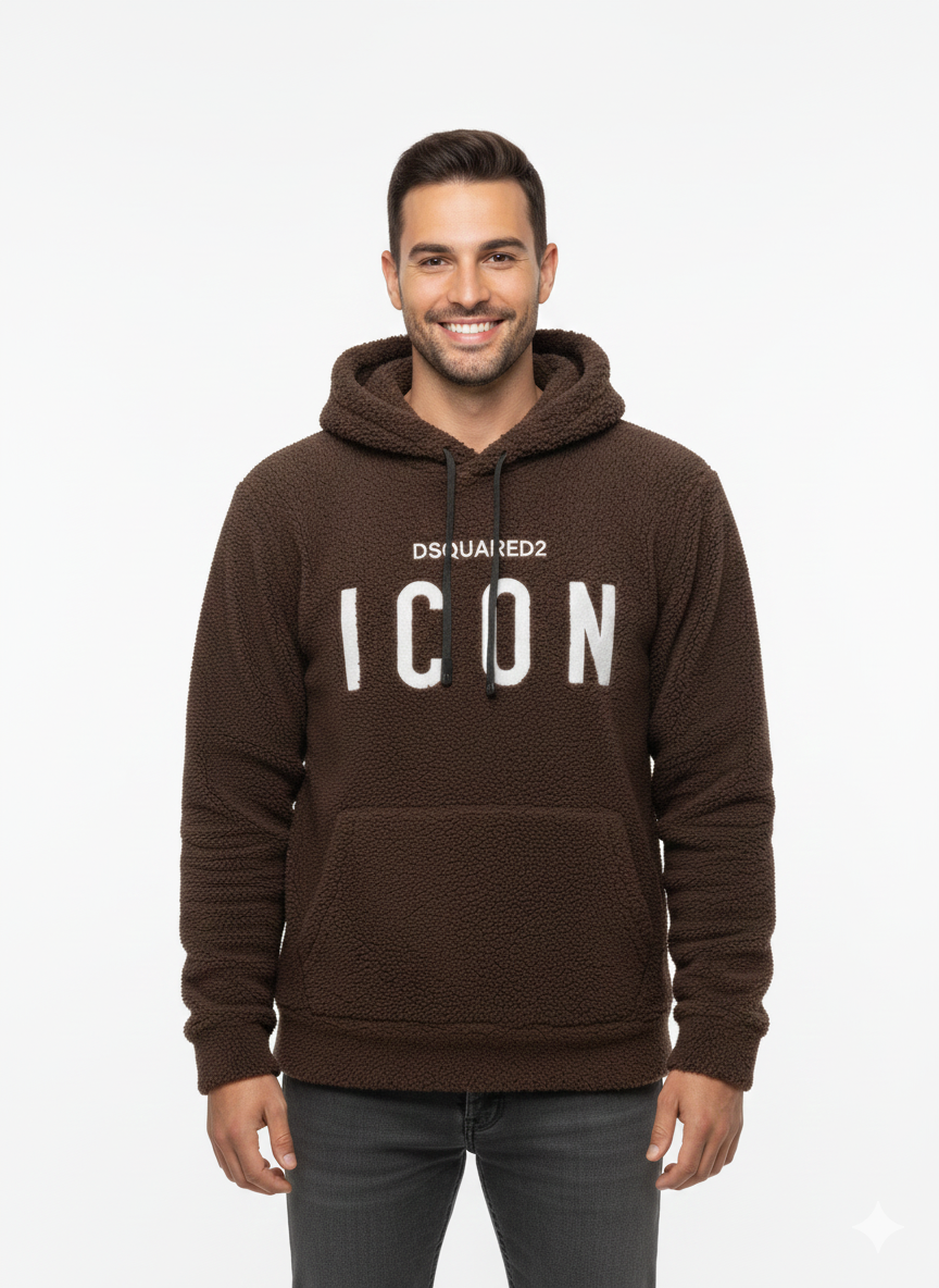 Bold, Signature Graphic The front of the hoodie features a striking, embroidered or high-quality felt “ICON” graphic in contrasting white. Above it, the detail “DSQUARED2” adds a subtle nod to designer inspiration. This signature logo ensures you stand out and instantly elevates your casual look.