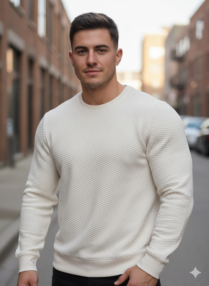Elevate your everyday wardrobe with our Signature Quilted Crewneck, designed for those who value both comfort and minimalistic style. This sleek off-white sweatshirt features a premium quilted texture that adds depth and sophistication, making it stand out from standard basics.