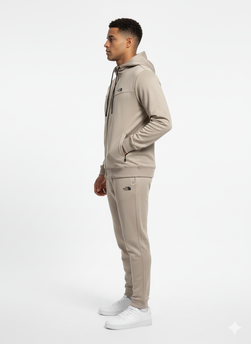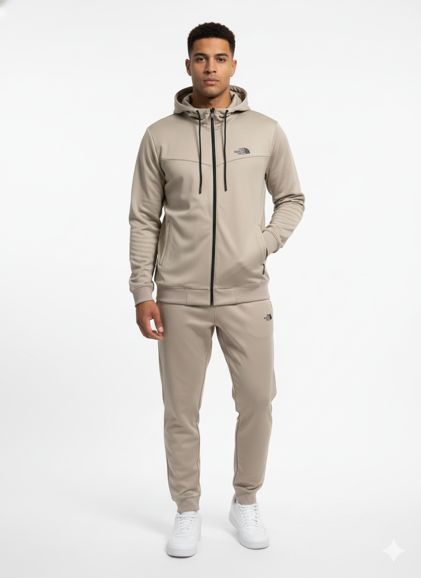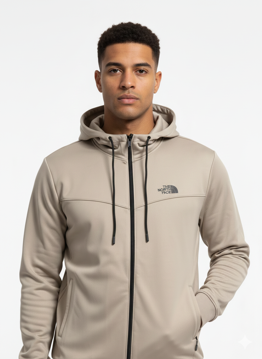 The Hoodie: Crafted from a soft, technical knit fabric, the full-zip hoodie offers lightweight warmth without the bulk. Its defining feature is the striking black piping that runs along the zipper line, creating a modern, streamlined silhouette. It includes an adjustable hood, ribbed cuffs and hem for a secure fit, and two discreet side pockets for essential storage. The iconic The North Face logo is subtly embroidered on the chest.