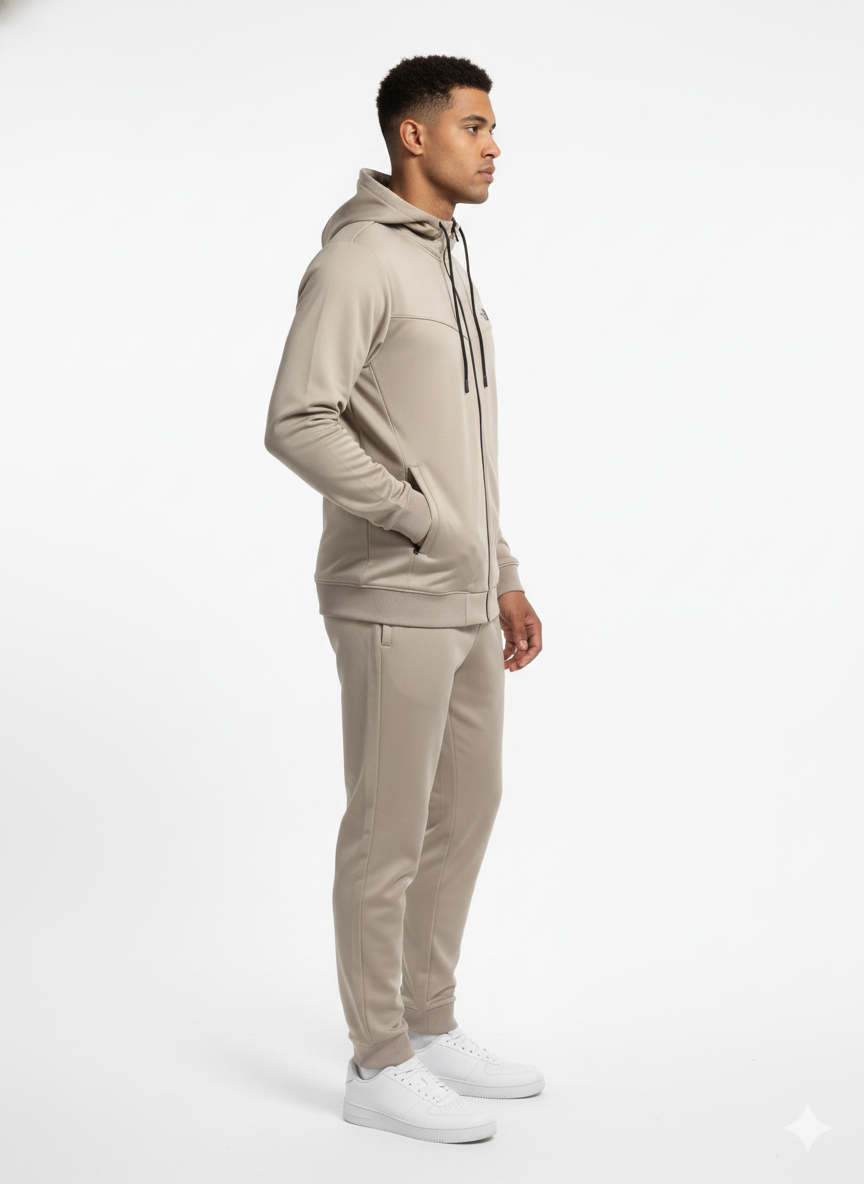 - Design: Full-zip hoodie with technical, streamlined piping.